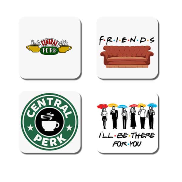 סט מושלם של 4 תחתיות לשתיה חמה או קרה בעיצוב מקורי של הסדרה האהובה חברים