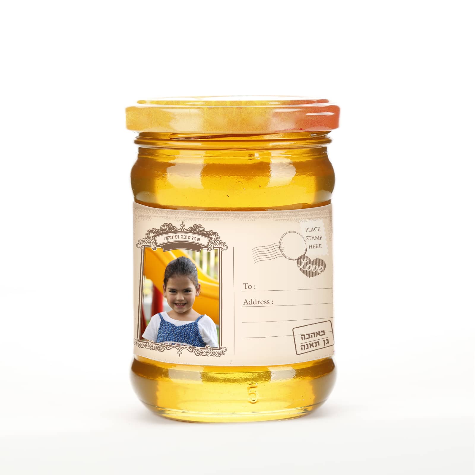 מדבקה לצנצנת דבש דגם גלויות שנה טובה